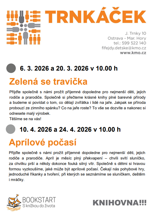 Jsme zapojeni v projektu S knížkou do života – Bookstart, který podporuje společné čtení od nejranějšího věku. Setkání propojují zábavné aktivity s učením, aby děti i rodiče mohli společně zažít něco nového.