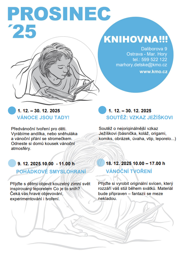 Jste doma a nudíte se? Vyrazte s celou rodinou do knihovny! Máme pro vás připravený bohatý program po celý měsíc prosinec.
