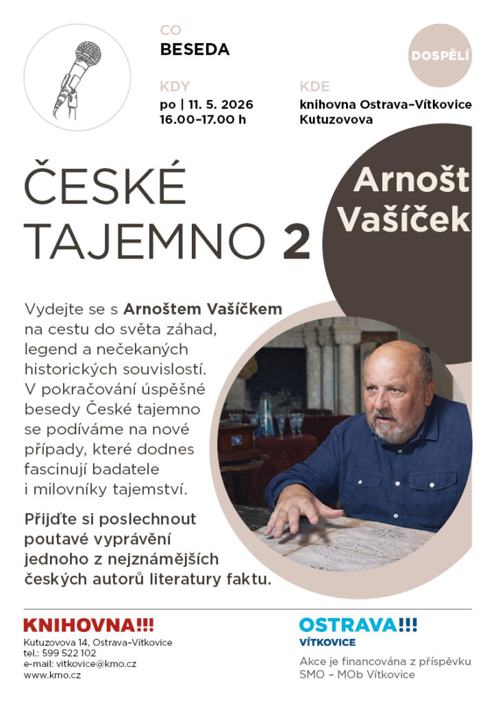 Vydejte se s Arnoštem Vašíčkem na cestu do světa záhad, legend a nečekaných historických souvislostí. V pokračování úspěšné besedy České tajemno se podíváme na nové případy, které dodnes fascinují badatele i milovníky tajemství.