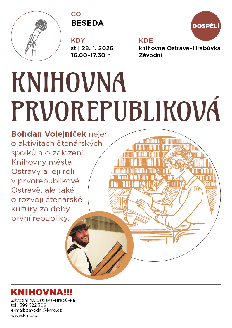 Zveme Vás na přednášku Bohdana Volejníčka nejen o historii Knihovny města Ostravy.