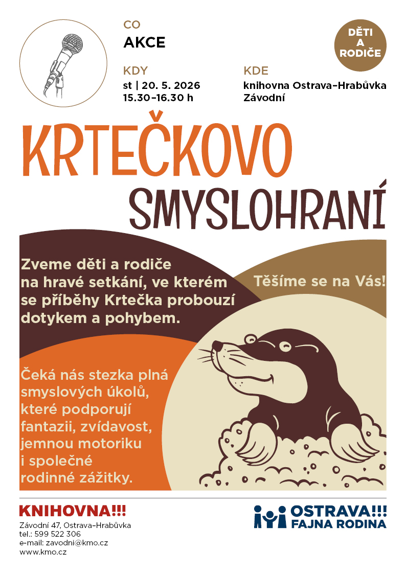 Zveme děti a rodiče na hravé setkání, ve kterém se příběhy Krtečka probouzí dotykem a pohybem.