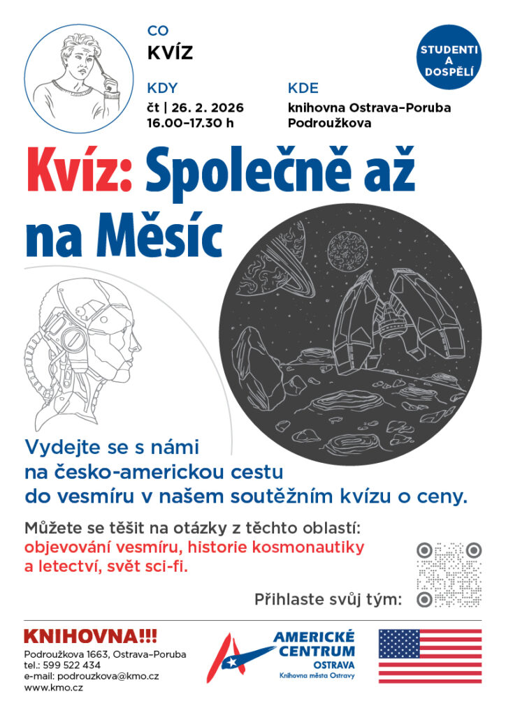 Vydejte se s námi na česko-americkou cestu do vesmíru v našem soutěžním kvízu o ceny. Můžete se těšit na otázky z těchto oblastí: objevování vesmíru, historie kosmonautiky a letectví, svět sci-fi.