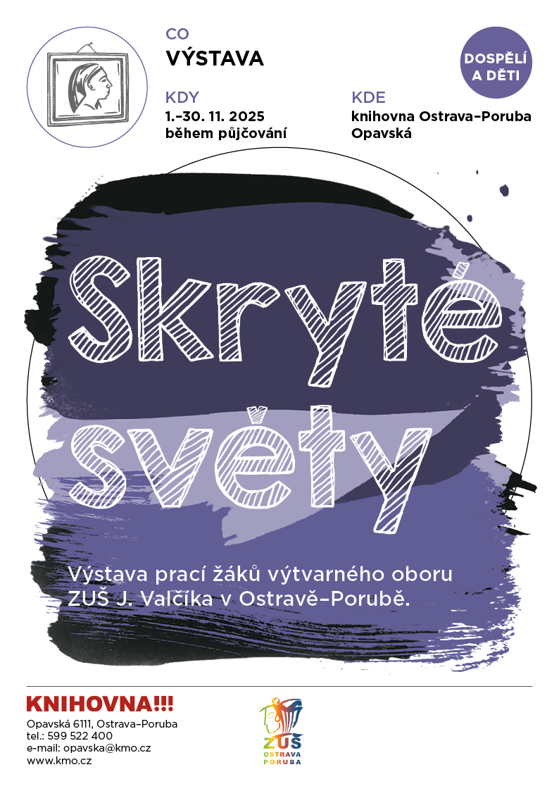 Srdečně Vás zveme na shlédnutí výstavy prací žáků výtvarného oboru ZUŠ Josefa Valčíka v Ostravě - Porubě pod vedením paní učitelky Jiříkové.