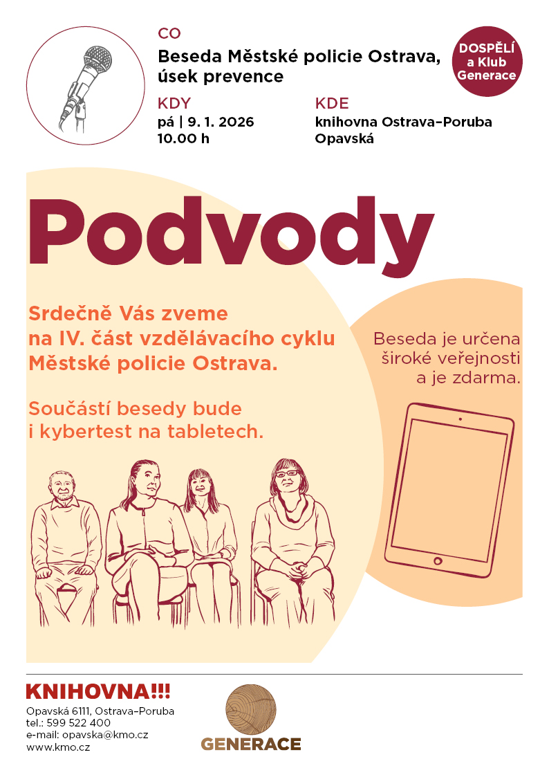 Srdečně Vás zveme na další vzdělávací akci Městské policie Ostrava, tentokrát na téma Podvody s možností praktického vyzkoušení na tabletech.