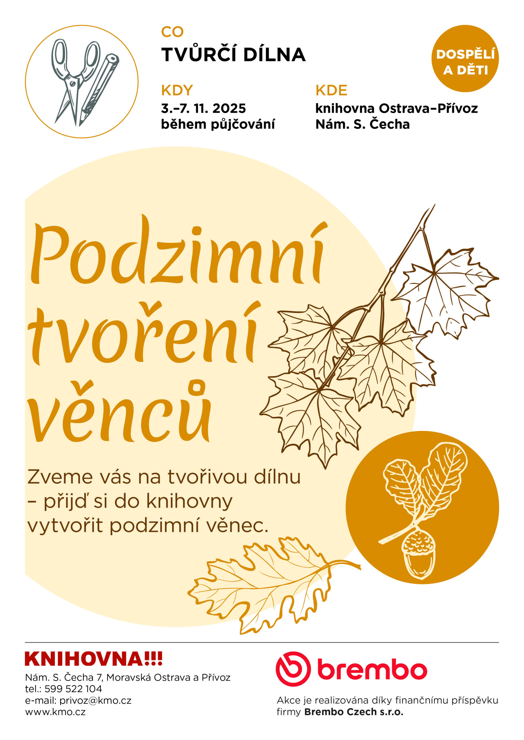Zveme vás na tvořivou dílnu - přijď si do knihovny vytvořit podzimní věnec.