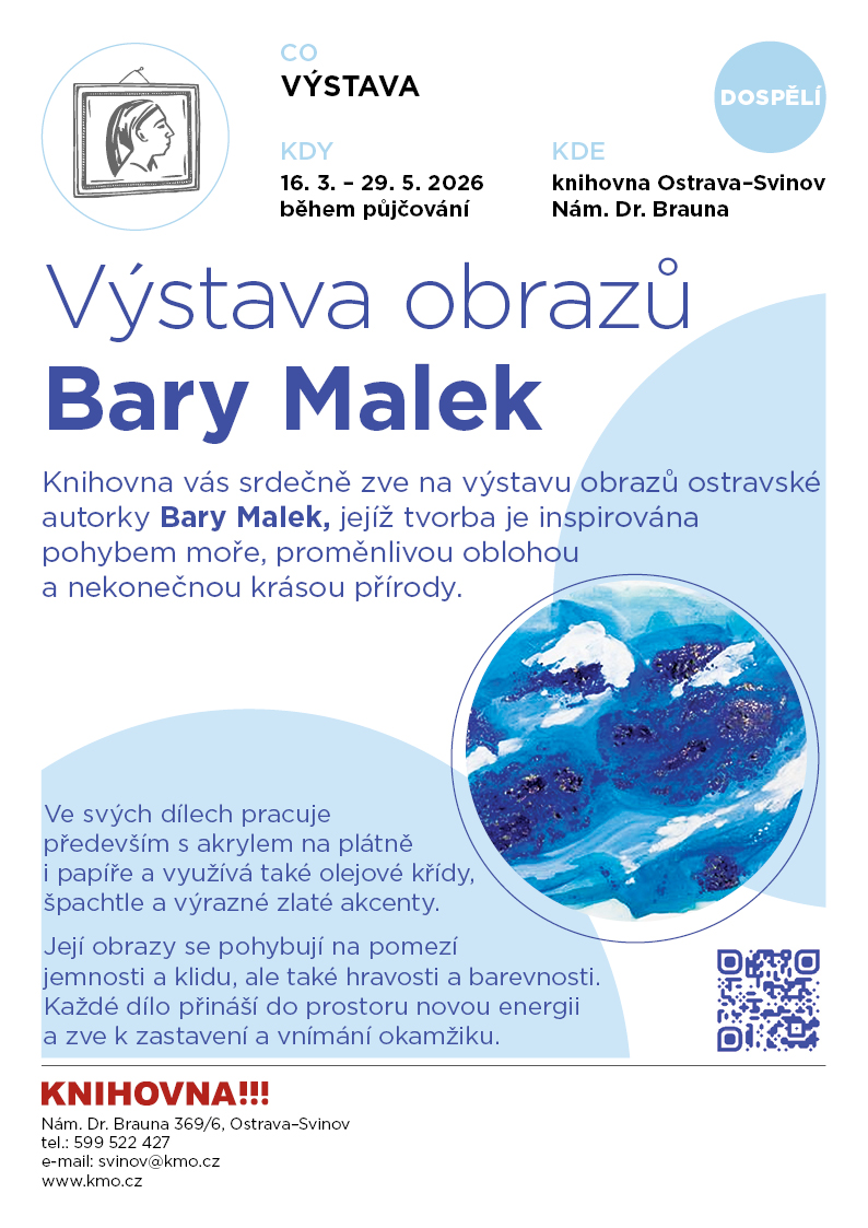 Knihovna vás srdečně zve na výstavu obrazů ostravské autorky Bary Malek, jejíž tvorba je inspirována