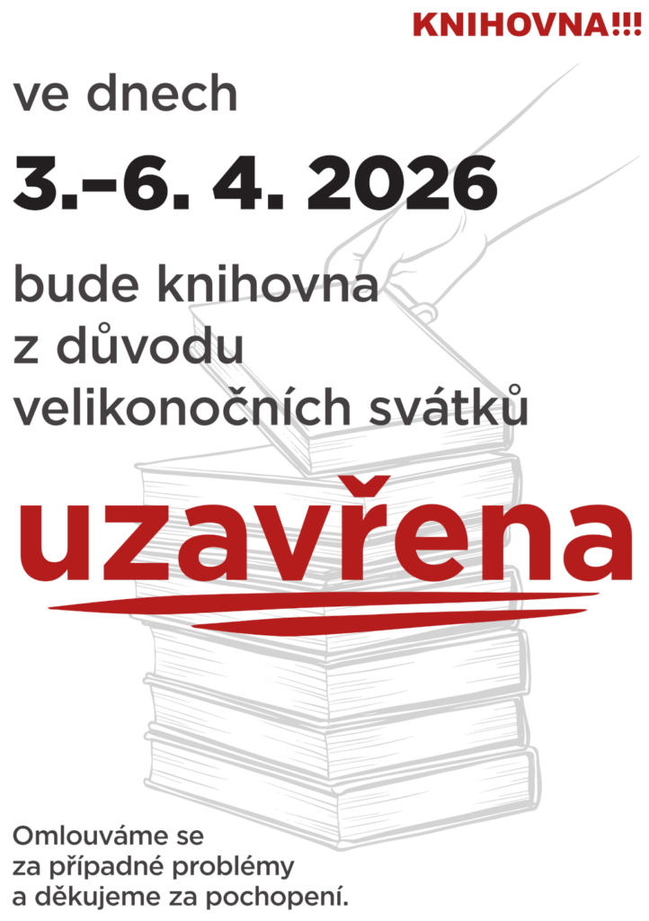 Ve dnech 3.-6. 4. 2026 bude knihovna z důvodu velikonočních svátků uzavřena. Děkujeme za pochopení.